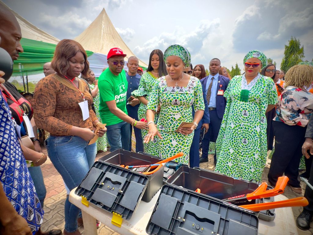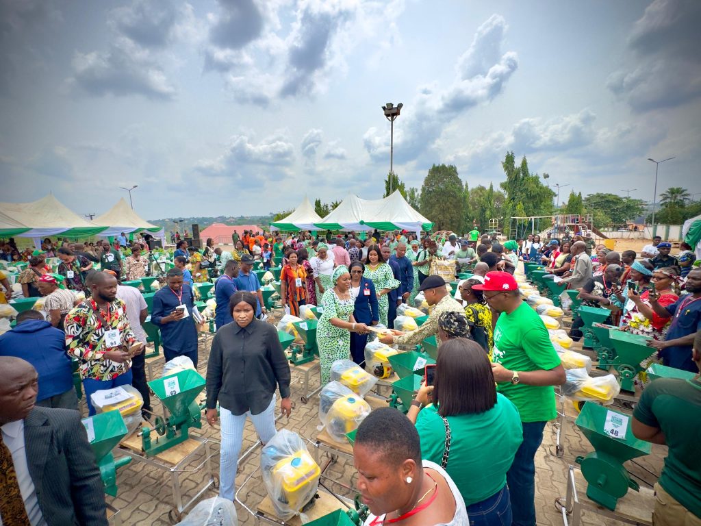 The First Lady of Nigeria and National Chairman of the Renewed Hope Initiative (RHI), through her agricultural support program, amplified by the Wife of the Governor of Anambra State, Mrs. Nonye Soludo, has empowered over 200 beneficiaries with equipments in Anambra State.