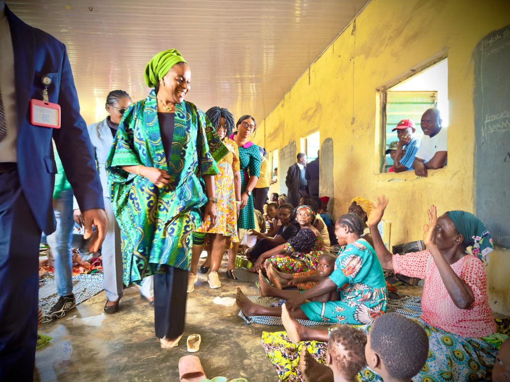 Mrs. Nonye Soludo, wife of Anambra State Governor, Professor Chukwuma Soludo, recently visited the Internally Displaced Persons (IDP) camp at Central Primary School, Odekpe, Ogbaru, accompanied by representatives from the World Health Organization (WHO). The visit aimed to understand and share the plight of flood-displaced individuals, acknowledging the hardships they face after being forced from their homes.