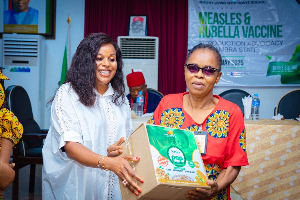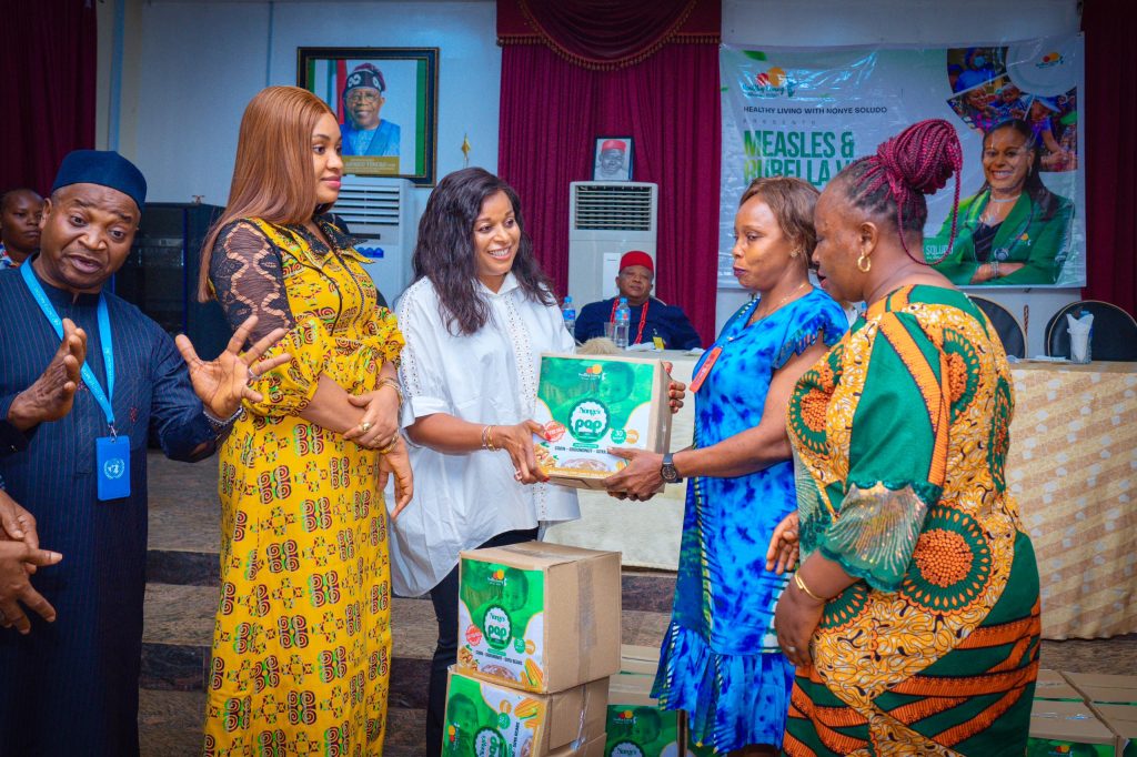 Amawbia, Anambra State – In a landmark event at the Old Governor’s Lodge in Amawbia, Mrs. Nonye Soludo, wife of the Anambra State Governor, spearheaded another transformative phase of her “Healthy Living with Nonye Soludo” initiative, hosting the distribution of Nonye’s Healthy Living Kwash Pap and the inauguration of the Measles and Rubella Vaccine Introduction Advocacy campaign.