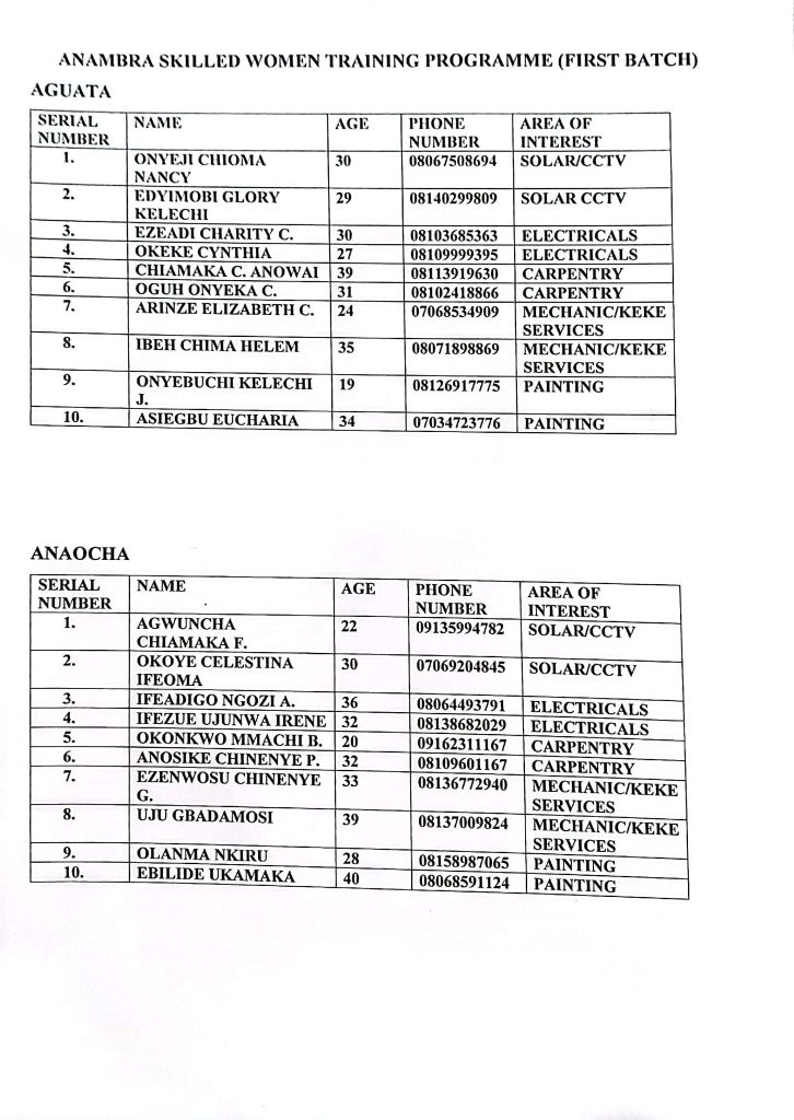 The selection phase for the first batch of the “Anambra Skilled Ladies Training Program” is scheduled to take place on Tuesday, August 26, 2025, at the Government House’s Light House Banquet Hall in Awka.